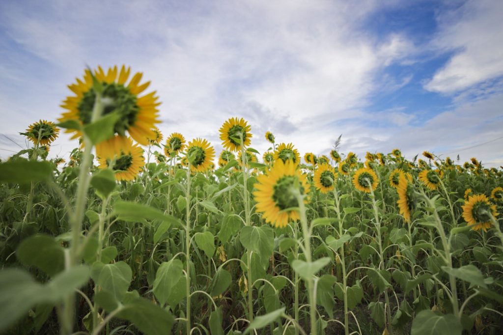 ただ、ひまわりの正面から広角レンズで映そうとするとどうしても人口建築物が画角的に入り込んでしまうため、その点は割り切る必要があります。
